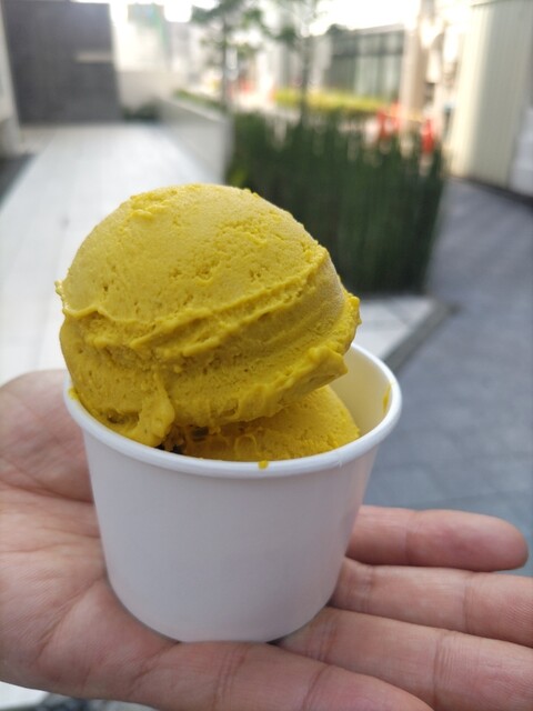九重栗かぼちゃはオーナーが海の帰りに気に入って持ち帰ったもの。これが!濃厚!溶けたジェラートがクリーム状というストロングスタイル。こちらのバターナッツかぼちゃも素晴らしいのだけれど濃厚すぎて冷たさが薄いと感じるようなアイスなのにパンプキンパイのフィリングのような。もし出会えたらラッキーです