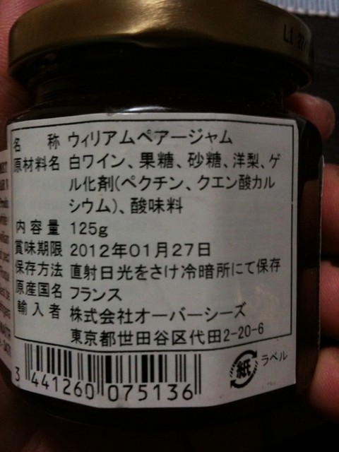 ジャム日記27 横浜カルディで購入したウィリアムペアージャム (2011/02/21)