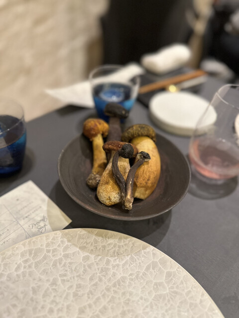 2年間ブランデーに漬け込んだボラの卵って凄くないですか?!ここに来なければ一生食べれない素材です。旨みスゴスギ!楽しみな給食とはきな粉をまぶした贅沢なクロワッサンの揚げパンの事ですね。どこの地域でも通じるか分かりませんが関東圏内であればこの味が給食のイメージである事を分かるかと思います。私がこのお店で最も好きな「ブリ大根」も健在!大根の食感は生に近いのに中心まで出汁が浸透していまして激ウマなのです。High & Low ステーキも相変わらずの絶妙なガストロバック火入れで最高に美味しい♪ スギ寿司はかなり進化しておりまして、黒アワビを千切りにし、アワビの肝リゾットと合わせたものです。これは食材だけ聞いても美味しいに決まってますね。最後のデザートはなんとヤマドリダケのアイスクリーム。あいかわらず奇抜ですね~w 徹底的に千葉県の食材を使い倒した、攻めるイノベーティブ。また来れて良かったです♪