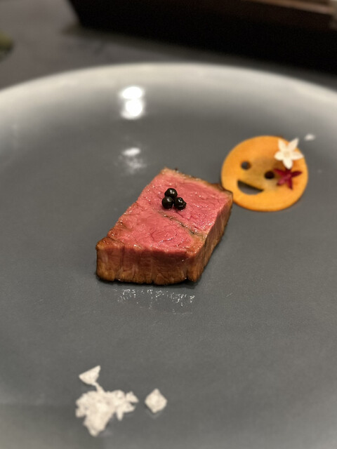 ⑰ High & Low ステーキ(アントシカダのコオロギ醤と蜂蜜と山崎12年を塗った八千代黒牛ヒレ)