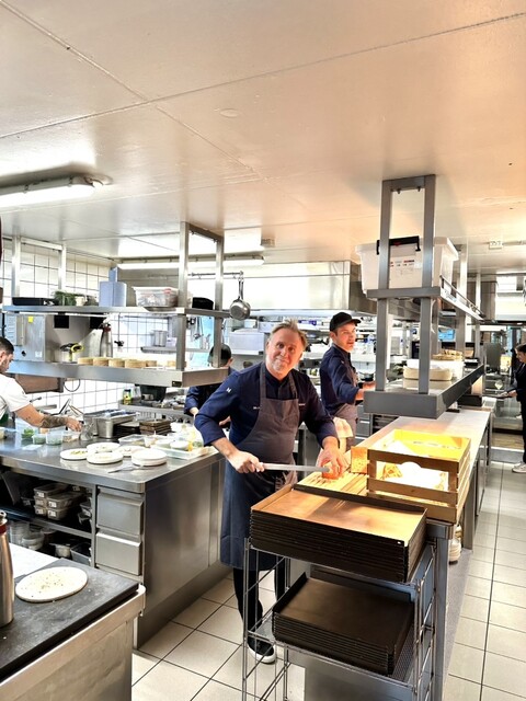 スマホを向けると調理をしながらもシェフが笑顔でお出迎えです。
