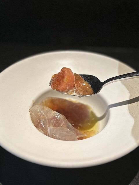 ⑧スモークフィッシュ、いくら、トマト、カラマンシーとブラックティーのジュレ