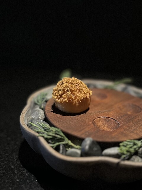 ⑦揚げ餅とカツオのピュレ