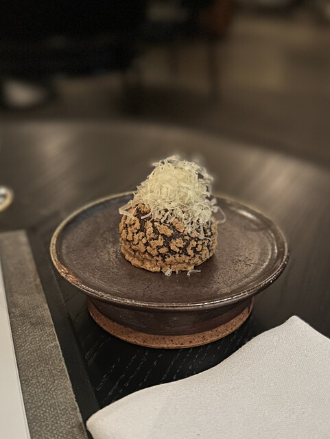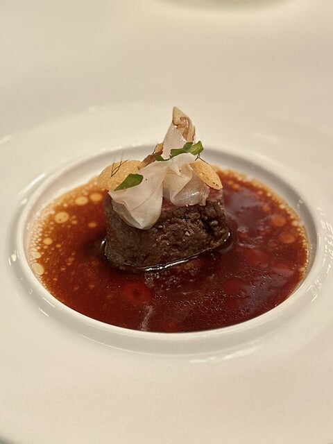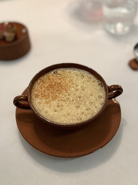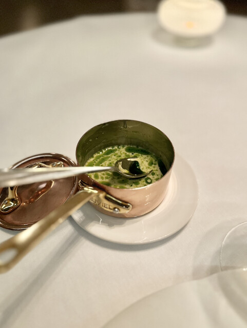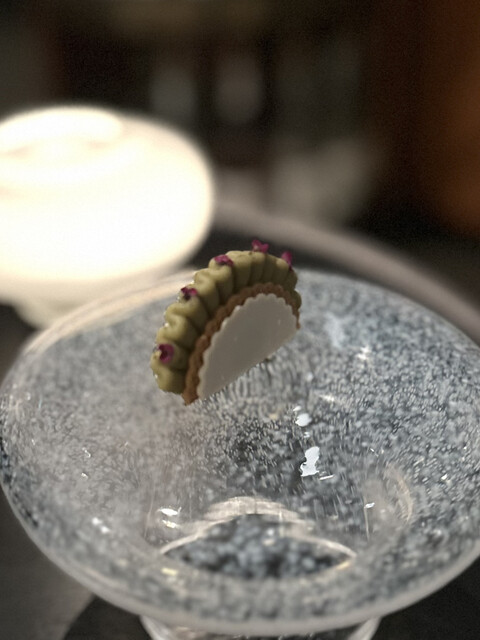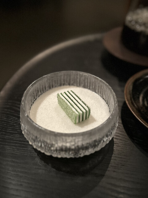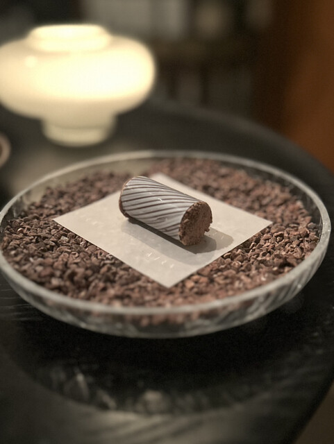 ①~⑤まではガーデンハウスのウェイティングルームでいただいたアミューズ。ちょっと暗すぎて写真が上手に撮れませんでしたが、とても丁寧で可愛いアミューズ。もちろん味や香りも様々な素材が複雑に絡み合ってクオリティの高さを感じます。客室の方へ移動しまして⑥から怒涛の9皿が始まります。青ムール貝という日本ではあまり見かけないムール貝は旨みが詰まっており、コールラビのさっぱりとした風味がとても相性が良いですね。ロブスターバターに添えられていたのは「カタバミ」の葉。酸味があって独特の味わい。ブリオッシュの後にリードヴォーが出て来たその後にノロ鹿が来るというのは日本では重すぎてあり得ない。でも私はこういうのが好みなのでツボにハマりました。全ての料理に手鍋追いソースが付いているところも抜け目がない。全体的にクリーミーなソースをたっぷり使っている。そこがヨーロッパらしくてとても良いです。デザートもしっかり目のものが2品でどちらもさっぱりではありますが美味しい。再びガラスハウスのウェイティングルームに移動して小菓子を頂きます。どれも細工が細かくて美味しい♪ コーヒーは目の前でドリップという最高の演出。もうこれ以上何を求めるか?!難点は一つも見つからず、エキサイティングなディナーを楽しむ事ができました。