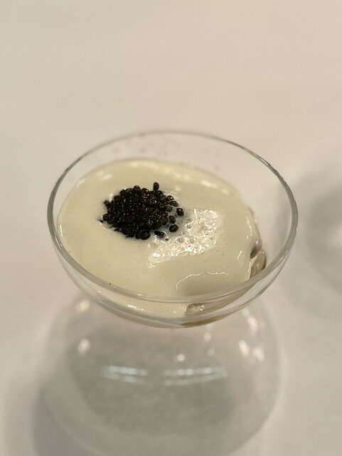 ⑦ダイバーホタテ 青ムール貝 牡蠣 キャビア 椎茸 コールラビの出汁