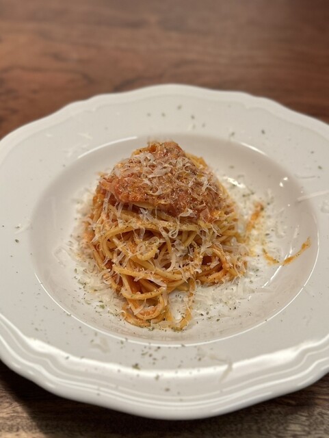 最初のビンチョウマグロ、なんだか冷凍の何かをゴリゴリと削り取っていまして、冷凍かぁなんて思って見ていました。出来上がった皿を見てもなんの変哲も無さそうに見えたアミューズでしたが、食べてみるとびっくり!!何この濃い味なトマトソース。しかも半分凍っている。単にケチャップみたいな濃さではなく、旨味・甘味・塩味・酸味のバランスを絶妙に保ったまま濃くなった感じ。ビンチョウマグロはそんなに良い素材ではなくてもこのソースがあれば十分美味しく食べられてしまいます。次なる一皿はポレンタにバッカラマンデカート?(ポルトガルのバカリヤウみたいな塩漬けタラをソースにしたもの) ん~、この料理を国内経験しただけで作れるとはとても思えない。聞いてみると店主はやはりフィレンツェで修業されていたようですね。どれもとても美味しいのですが、とりわけ感動レベルであったのが「⑧チブレオローストビーフ 福島県産の黒毛和牛(3日以上前予約のみ)」これはとんでもなく美味しいスペシャリテですよ!!味付けはなんとなくポン酢に近いような感じもするんですが、酸味の尖りが一切ない。当然オリーブオイルをはじめとするイタリア食材だけで作っているはずなんですが、旨味がすごくてもう一度食べたい。ほんと感動レベルでしたので、思わず店主に「感動した」とお伝えしてしまいました。ここは良いですね~。滋賀は遠いですが、また出張に行ったときには絶対食べたい。他の料理も全部美味かったですが、とりわけこのローストビーフには完全に虜にさせれられてしまいました。こちらのお店を選んで本当に良かったと思いました。
