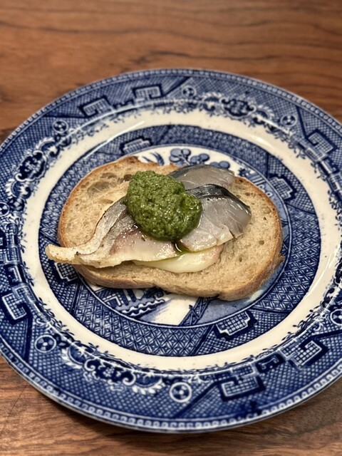 ③〆サバのクロスティーニ サルサヴェルデ タレッジョチーズ イタリアの酵母を使った自家製パン