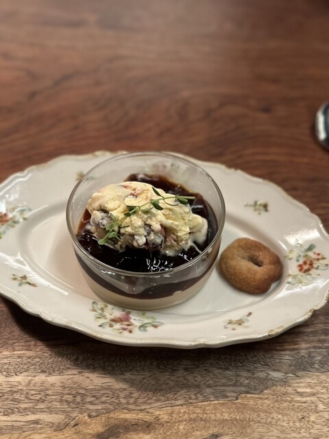⑩コーヒーゼリー エスプレッソのレアチーズケーキ アメリカンチェリーとマスカルポーネのアイスクリーム チャンベリーニ(赤ワインのクッキー)