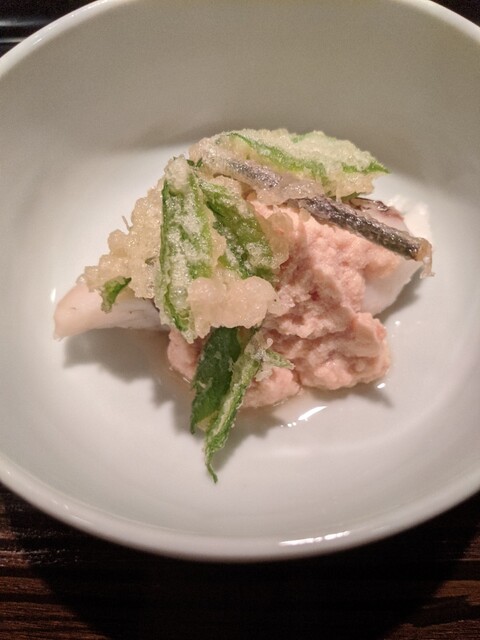 焼き物の鰆は皮目がパリッと香ばしく、身はふっくらとジューシー。添えられた香味野菜と山菜の苦味が、春らしい余韻を演出します。白魚の天ぷらはサクッと軽やかで、塩でシンプルにいただくと、淡い甘みが際立ちます。