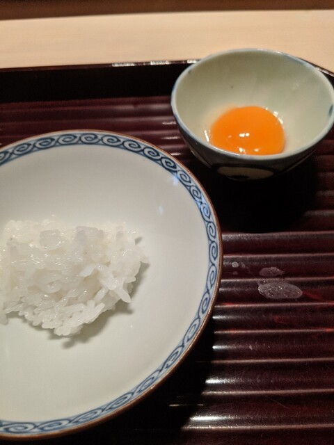 ご飯ものは三種。まずは白米に炭焼きの牛ヒレ肉をのせて。柔らかく、しっかり味が付けられており、炭の香ばしさとともにご飯との相性も良いです。続く生卵ご飯は、シンプルながら卵のコクが際立ち、間違いない美味しさ。最後の時鮭の炊き込みご飯は、脂ののった鮭の旨味が米にしっかり移っており、香りと味わいの両面で満足度の高い一杯でした。