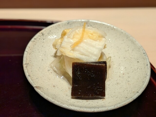 箸で切れる柔らかさ。舌の上ですっとほどけて、かぶの素直な甘みが広がる。白味噌がやさしく、ほっとする一皿