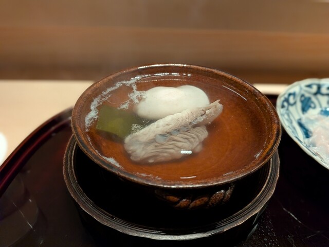 終盤には、蛤の炊き合わせ風吸い物でほっと一息。滋味深く、蛤の食感と優しい出汁に癒されます。
