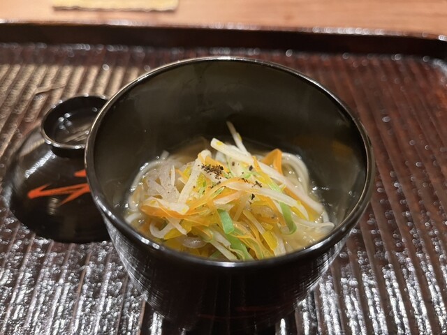 まずは、冷たい昆布茶です。アルコールは入ってませんが、ほのかに昆布を感じさせて、お茶というよりはカクテルみたいな味わいでした。