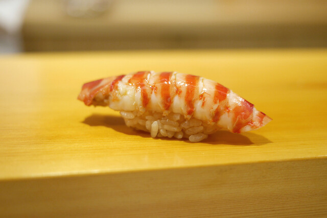 鳥貝は大きく肉厚でとても柔らかく甘味と香りが素晴らしく、車海老も飛び抜けて肉厚で甘味と旨味が秀でていました。