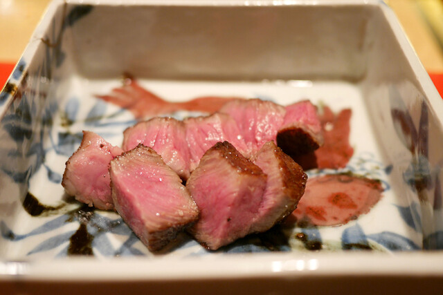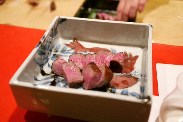 この日も最高品質の牛肉を色々な食材と合わせながら懐石料理のような品々が繰り出されていきます。