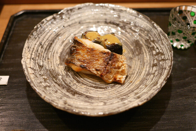 「焼物」・・・甘鯛松笠焼、牛蒡すり下ろし焼き 2016年7月
