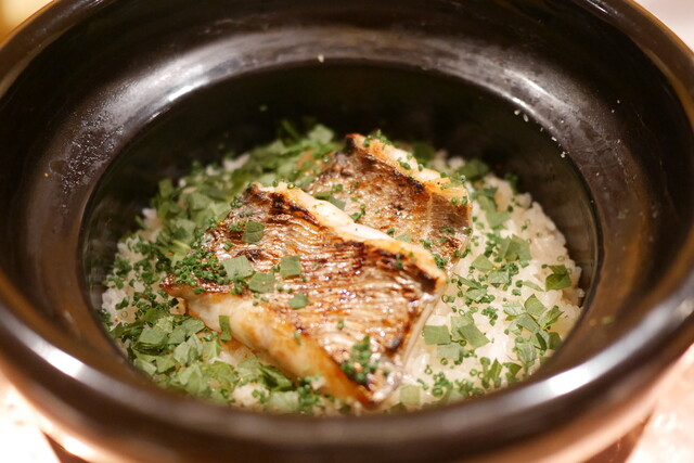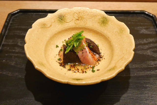 「焼物」甘鯛松笠焼き、牛蒡すり身揚げ