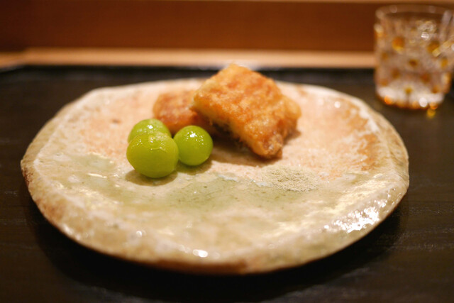 「揚物」・・・天竜川の若鮎、トリュフソース 2016年7月