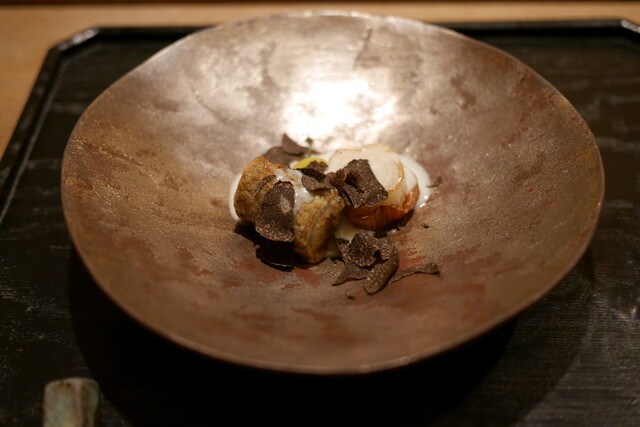 「揚物」・・・鮎の素揚げ、トリュフソース