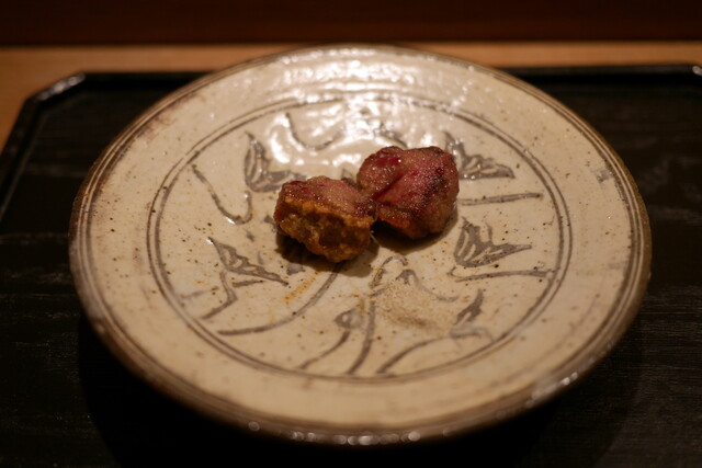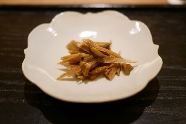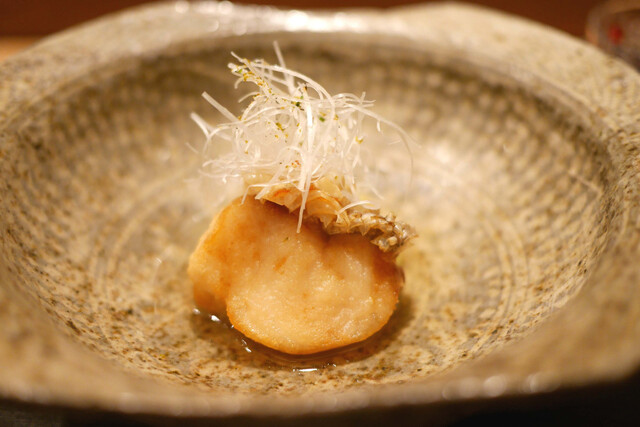 揚物「牛蒡と穴子揚げ 八角、昆布入り塩添え」 2015年2月