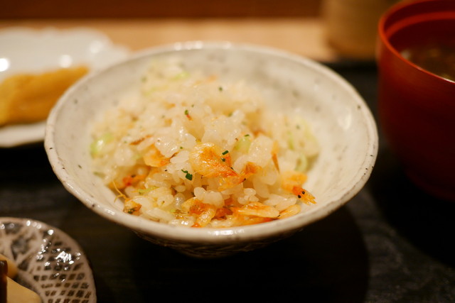 「飯物」・・・桜海老の炊き込みご飯、生海栗 2016年7月