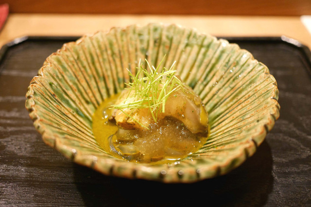 「蒸物」鮑酒蒸し、肝ソース掛け 2016年9月