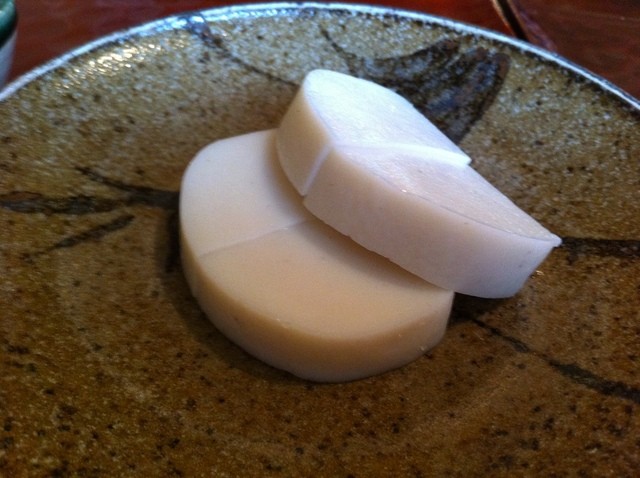 まず日本酒を常温を注文。続いて「板わさ」700円。