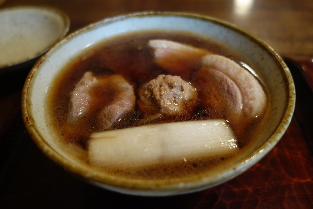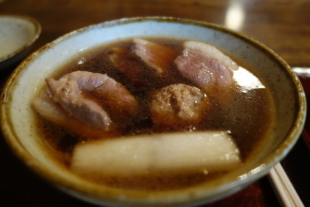 まず、出汁を啜って見ると鴨の脂や旨味も溶け込んだ何ともいえない味わいです。