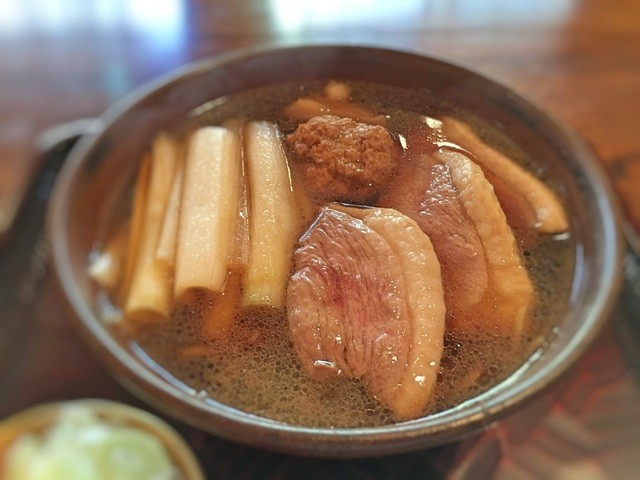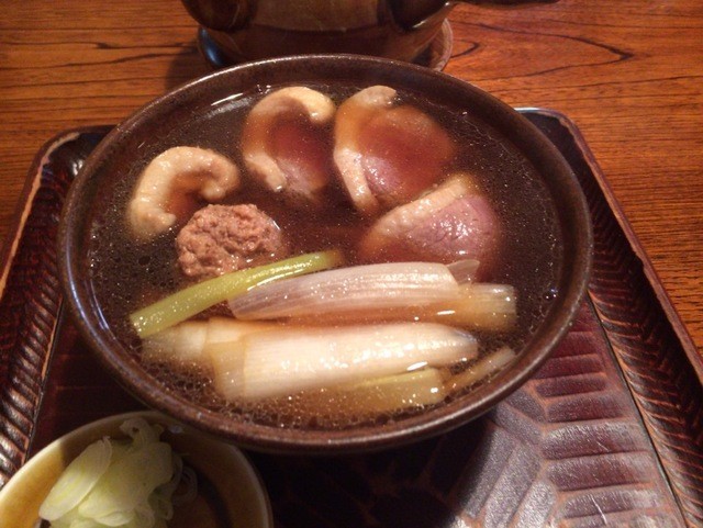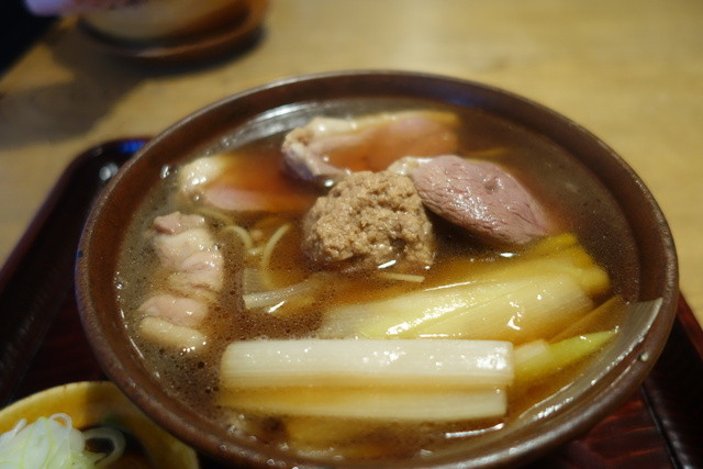 肉厚の鴨肉が5切れ、肉団子1個と白ネギが入った豪華版です。