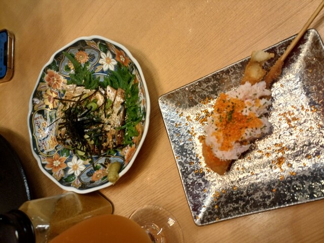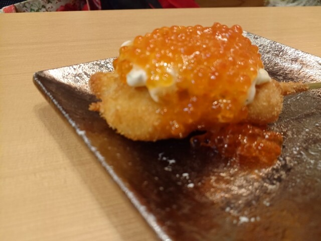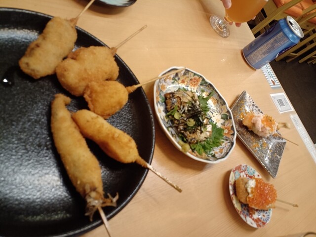 ゴマサバは臭みもなくゴマの風味もたっぷり。創作串は見た目も豪華でテンション上がります。