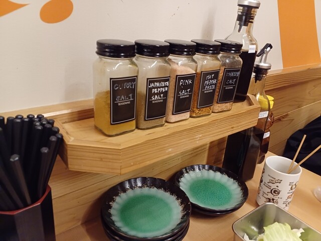 バラエティー豊富な調味料。ソースの口は細いのにちゃんと蓋付き鮮度と衛生的にもこだわったお店の姿勢が感じ取れました。