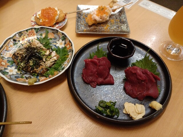 ゴマサバも臭みなくゴマの風味たっぷり、馬刺も見た目以上に枚数あり楽しめました。