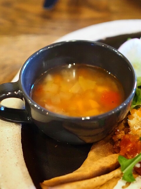 ミネストローネスープ添え。