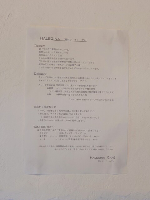 【店名】Halegina (晴れジーナ) cafe