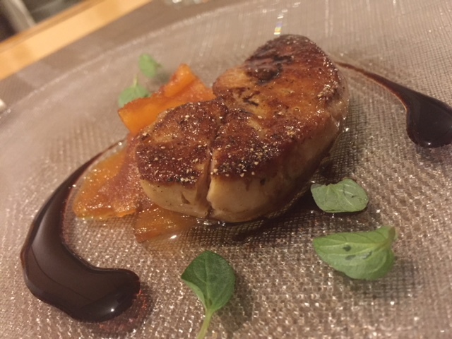 フォアグラのポワレはスライスした焼きリンゴと共に。おいしいに決まってる。