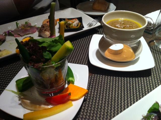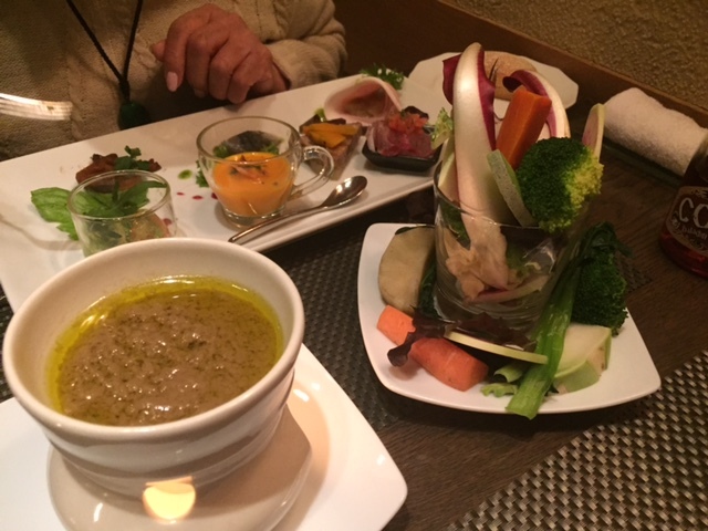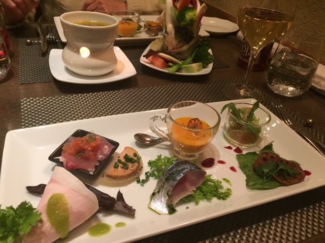 小さなスープから始まり、前菜盛り合わせはいつも通り目にも華やか。