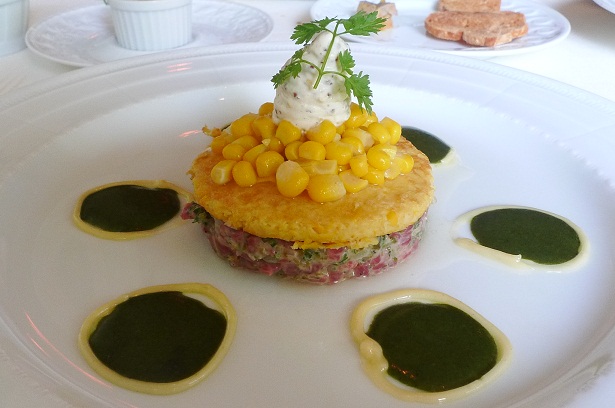 前菜2 とうもろこしのクレープと和牛肉のタルタル仕立て