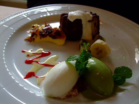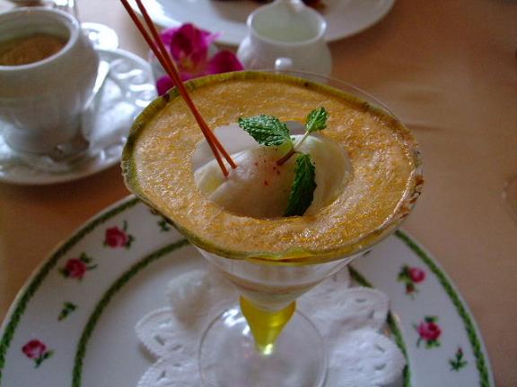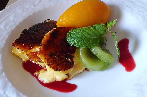 デザート1 黄色ピーマンのクレーム・ブリュレとマンゴーシャーベット