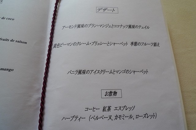 私も10年前よりは少食になったので、一番品数の少ないコースを選んで、シェフのお勧め(料金加算)を頂くのが、私の最近のパターンです。