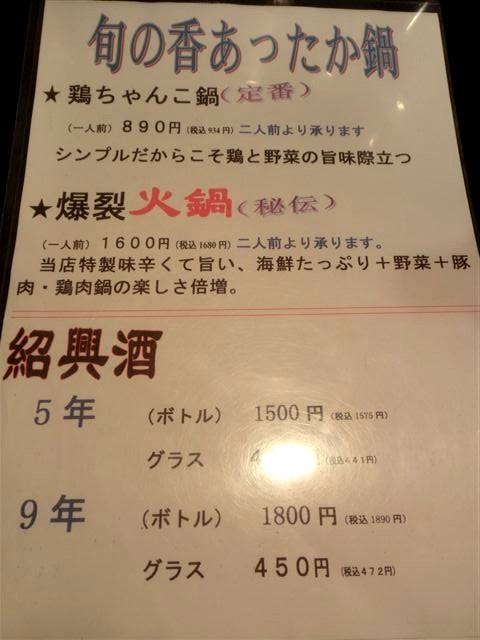「メニュー(鍋、紹興酒)」:具沢山の「爆裂 火鍋」が大人気♪