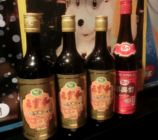 「紹興酒」:5年のボトル=¥1500。9年のボトル=¥1800