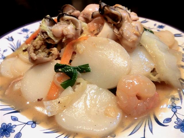 牡蠣・海老・あさり・豚肉! 濃厚な旨みのタッグと共に、中国餅がドカッと胃袋に降臨♪ 「福建式中国餅の海鮮炒め」