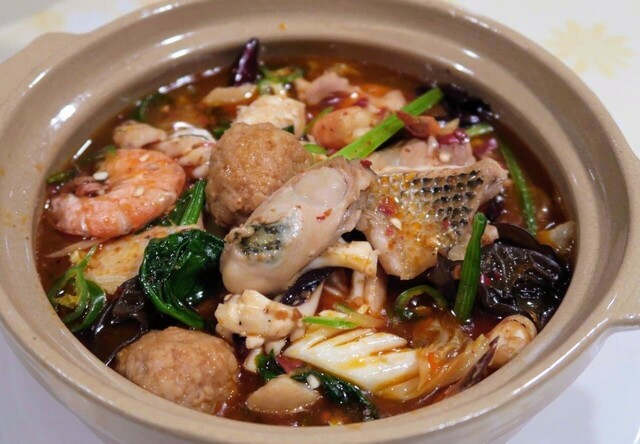 具材は、殻付き海老、牡蠣、豚肉、鶏肉、イカ、鱈、