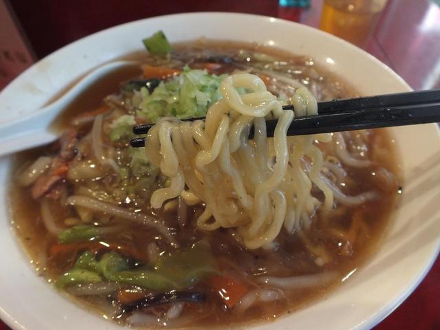 浅草開化楼の中太ちぢれ麺に