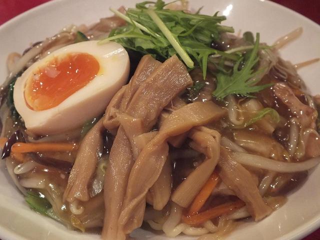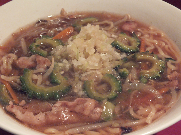 「季節のおすすめ 生碼麺 ゴーヤ」:野菜の甘みをたっぷりとたたえた餡に、ゴーヤの苦味が心地よい!