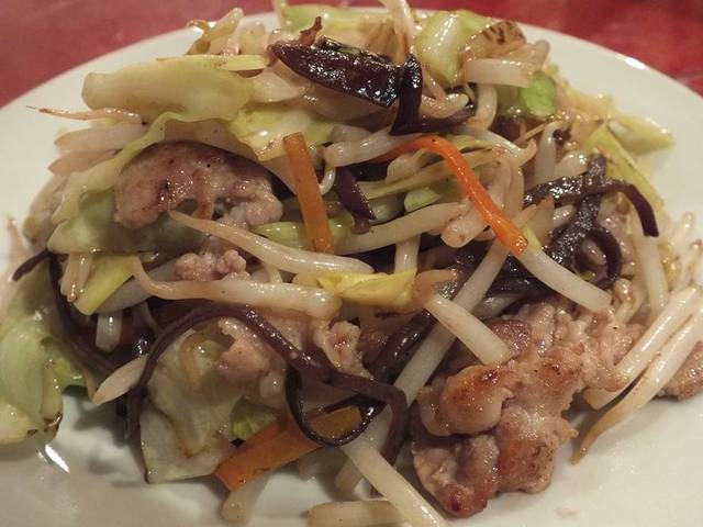 「生碼麺屋の野菜炒め」: 銘柄豚がたっぷり入っていて、食べ応え有り!