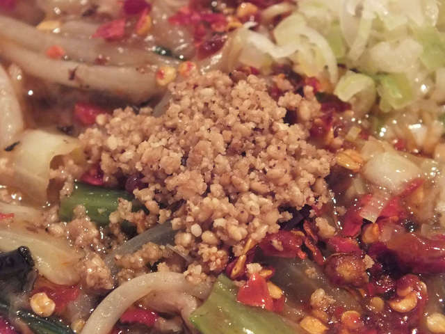 「辛辛辛 生碼麺」:餡と辛みがひとつにまとまって、