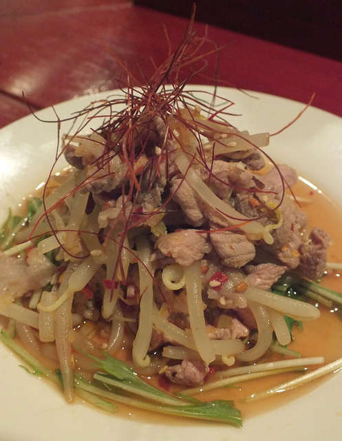 「銘柄豚のよだれ豚」:シャキシャキの太もやしと共に、