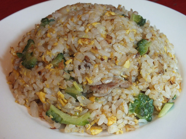 「気まぐれタパス ゴーヤの炒飯」夜に時おり登場する気まぐれメニュー! 節がフワッと香り、銘柄豚も主張するから、ゴーヤの苦味が浮つきません!