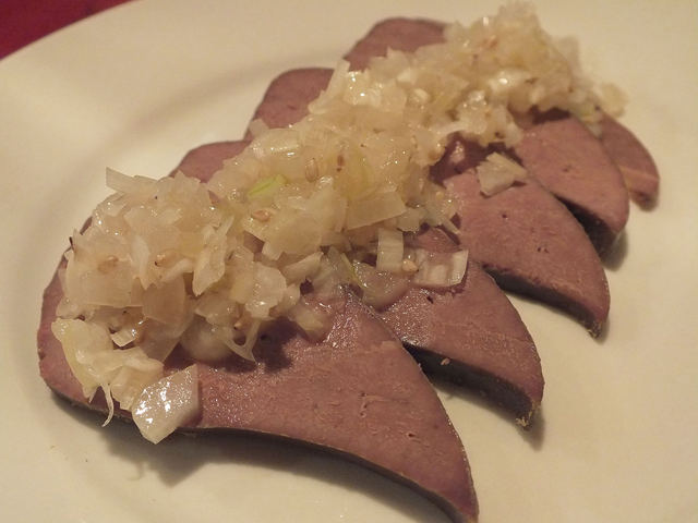 「スモーク! ポークレバーのお刺身 ごまネギソース」:ごまネギソースは、自家製の“塩だれ”を使用。